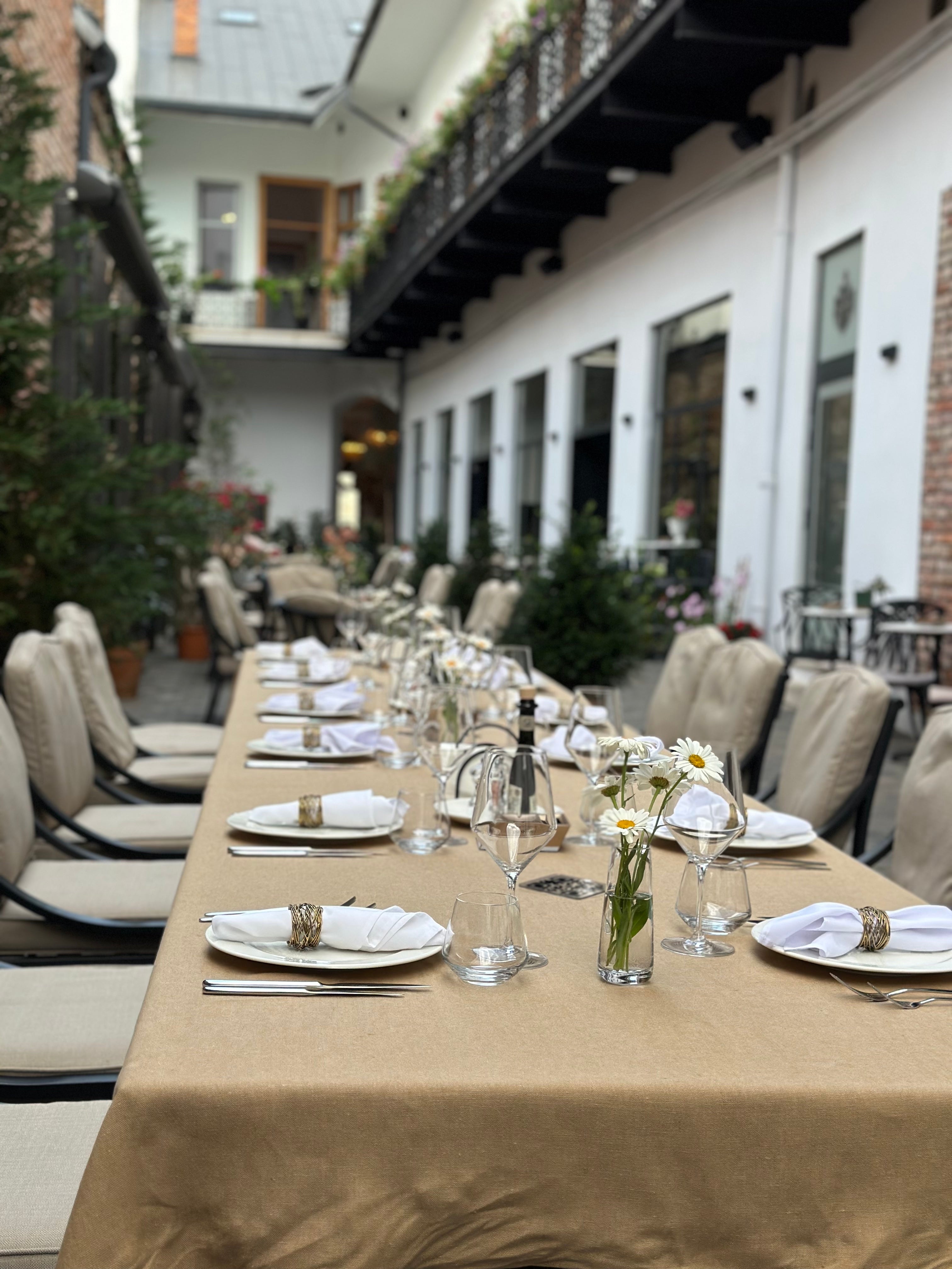 Unicitatea Casei NUMAÀ se simte în fiecare detaliu, dar mai ales în grădina interioară – un spațiu verde, intim și vibrant, perfect pentru serile lungi de vară. Cu o capacitate de până la 90 de persoane, această oază urbană găzduiește o alee pietruită ce leagă Piața Unirii de Piața Muzeului, adăugând locului un farmec aparte și o energie vie, care transformă fiecare întâlnire într-o experiență memorabilă.
